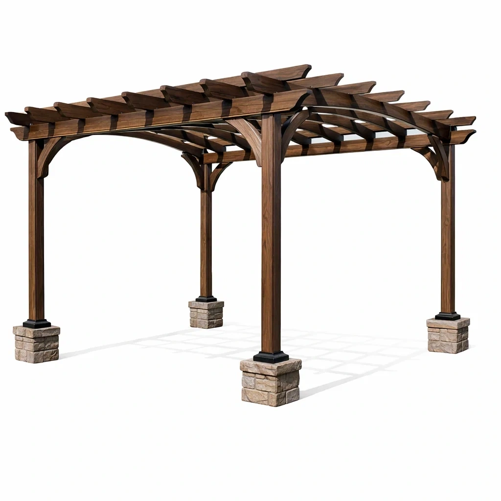 Pergola da esterno in legno e pietra 300x300x250 cm
