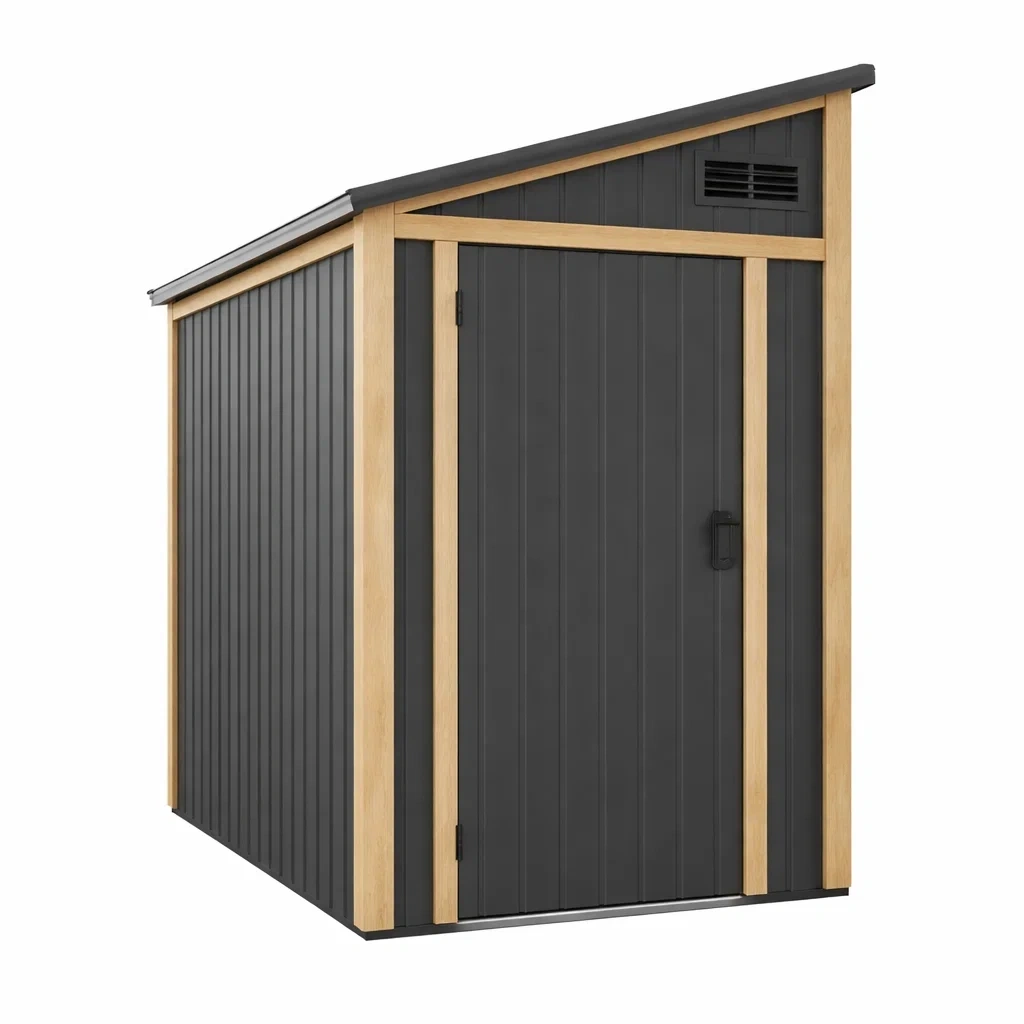 Casetta da giardino in metallo e legno nero con tetto inclinato 200x130x215 cm