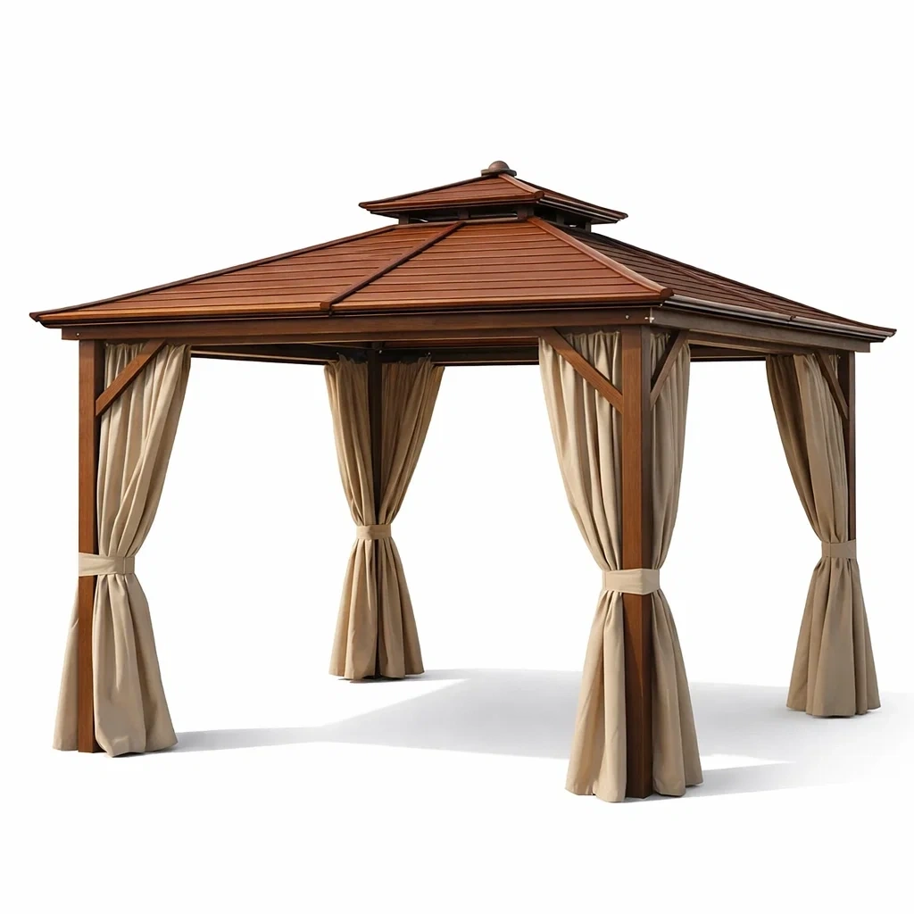 Gazebo in legno di cedro con tende in poliestere 3x3x2.7 m