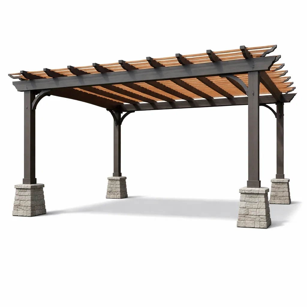 Il pergolato è realizzato con una struttura in acciaio verniciato a polvere e travi in legno trattato. Le colonne sono in finto pietra per garantire stabilità e design. Dimensioni: Lunghezza 400 cm, Larghezza 300 cm, Altezza 250 cm. Peso: 200 kg. Resistente agli agenti atmosferici, ideale per uso esterno. Richiede montaggio.