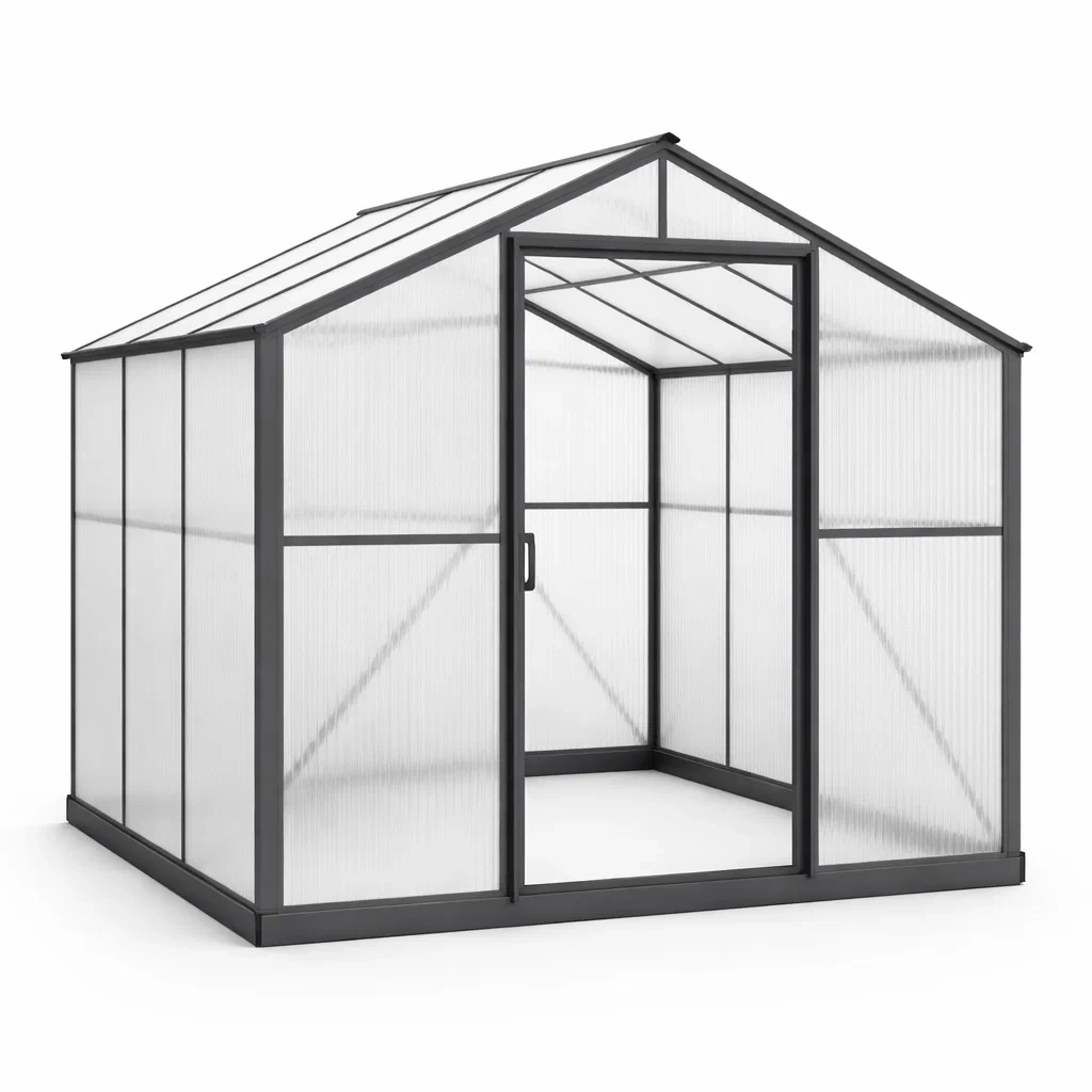 Materiali: Telaio in acciaio, pannelli in policarbonato alveolare da 4 mm.