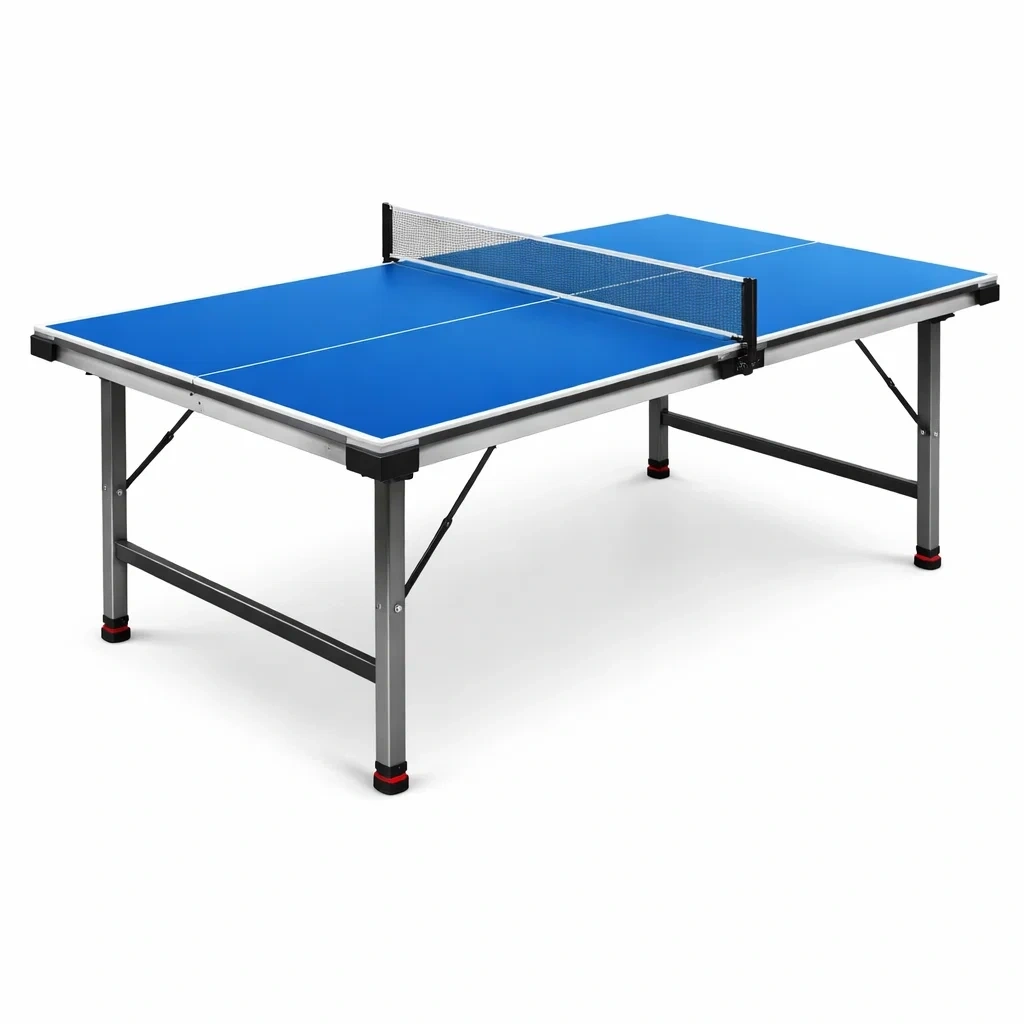 Il tavolo da ping pong è realizzato in legno MDF con una superficie blu e un robusto telaio in acciaio. Le dimensioni sono 274 cm di lunghezza, 152.5 cm di larghezza e 76 cm di altezza.
